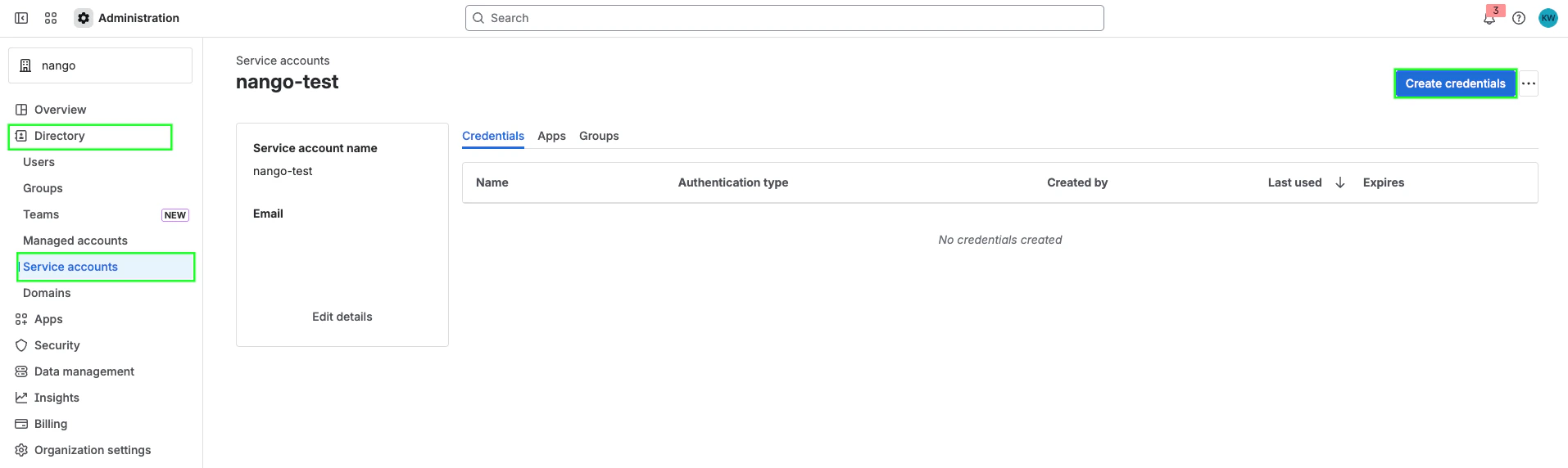 - Select Directory > Service accounts.