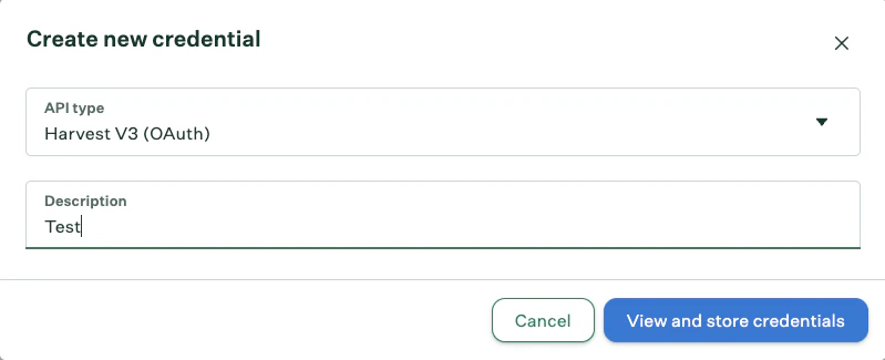 - Select Harvest V3 OAuth as the API type and enter a description for your credentials.