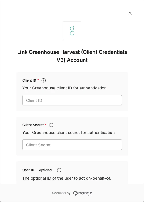 To authenticate with Greenhouse using Client Credentials, you need:- Client ID - Your Greenhouse client ID for authentication.