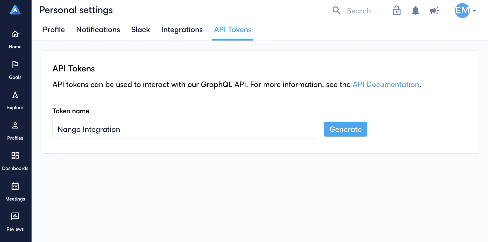- Give your token a descriptive name (e.g., “Nango Integration”)