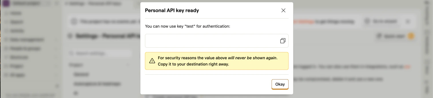 - Copy your API Key securely—you won’t see it again after you leave the page.