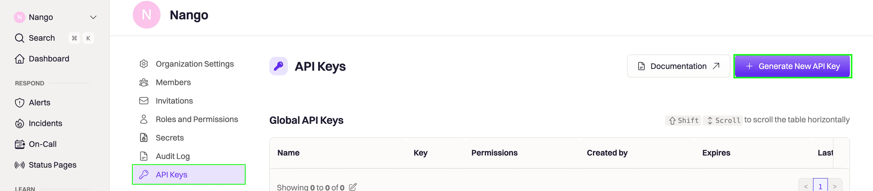 - Name - A label to help you identify the purpose of this API key (e.g., Nango Integration).