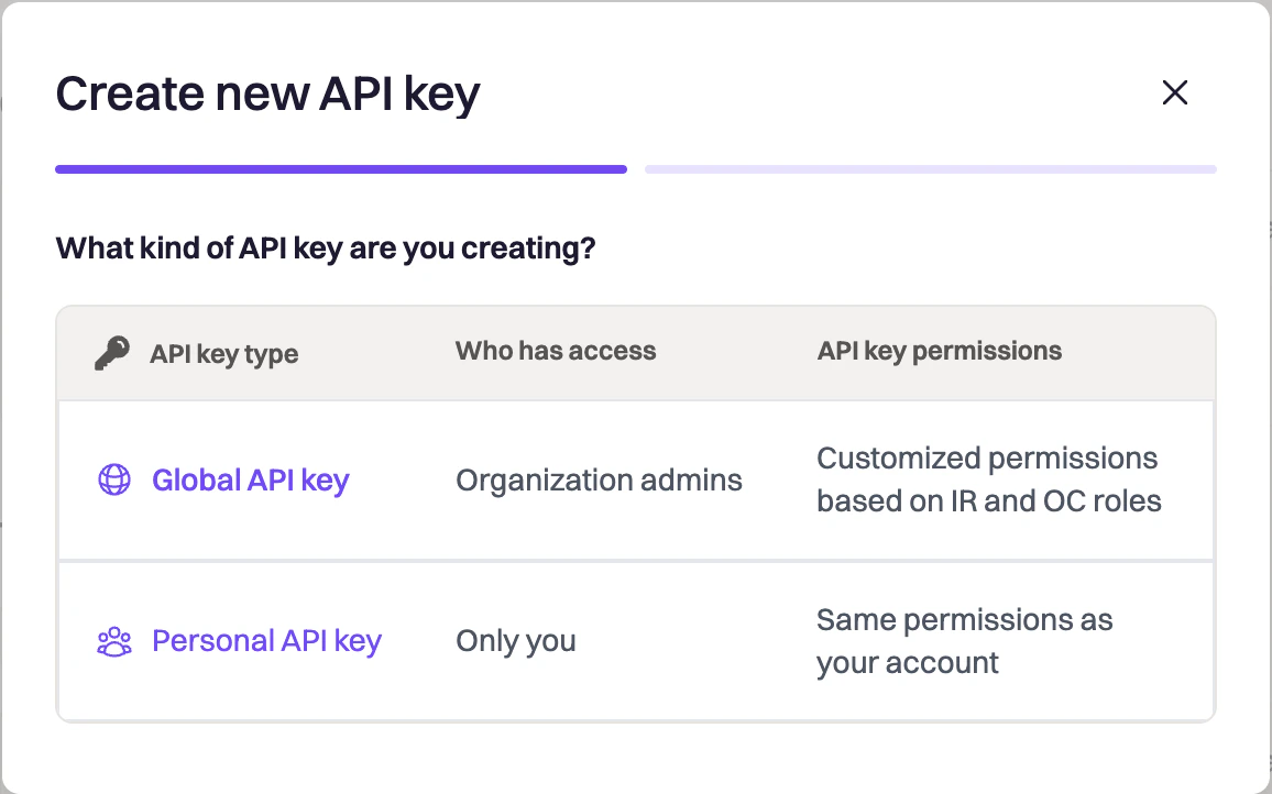 - Incident Response Role - If creating a Global API Key, you must select an appropriate incident response role.