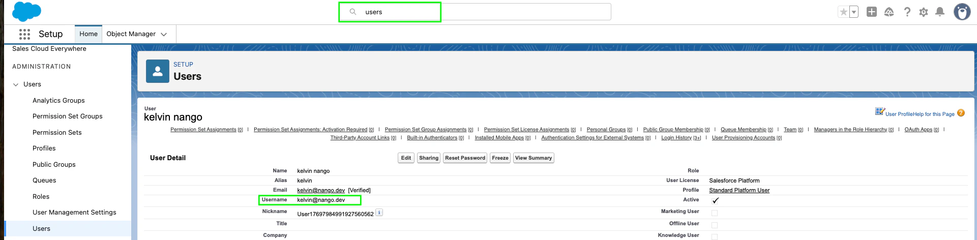 The Username you use for JWT must belong to a user who has one of the profiles you selected in Selected Profiles above. To find a valid username:- In Salesforce, go to Setup.