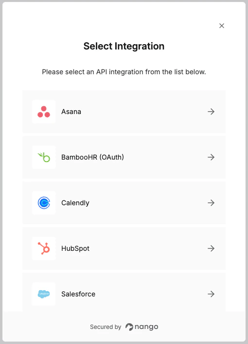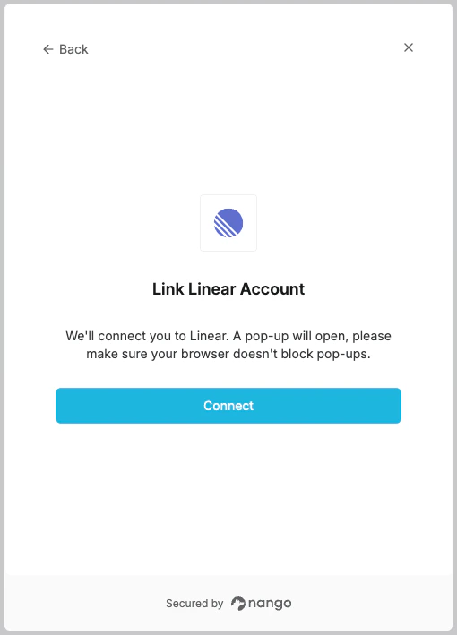 - Nango shows the reconnection flow to the user