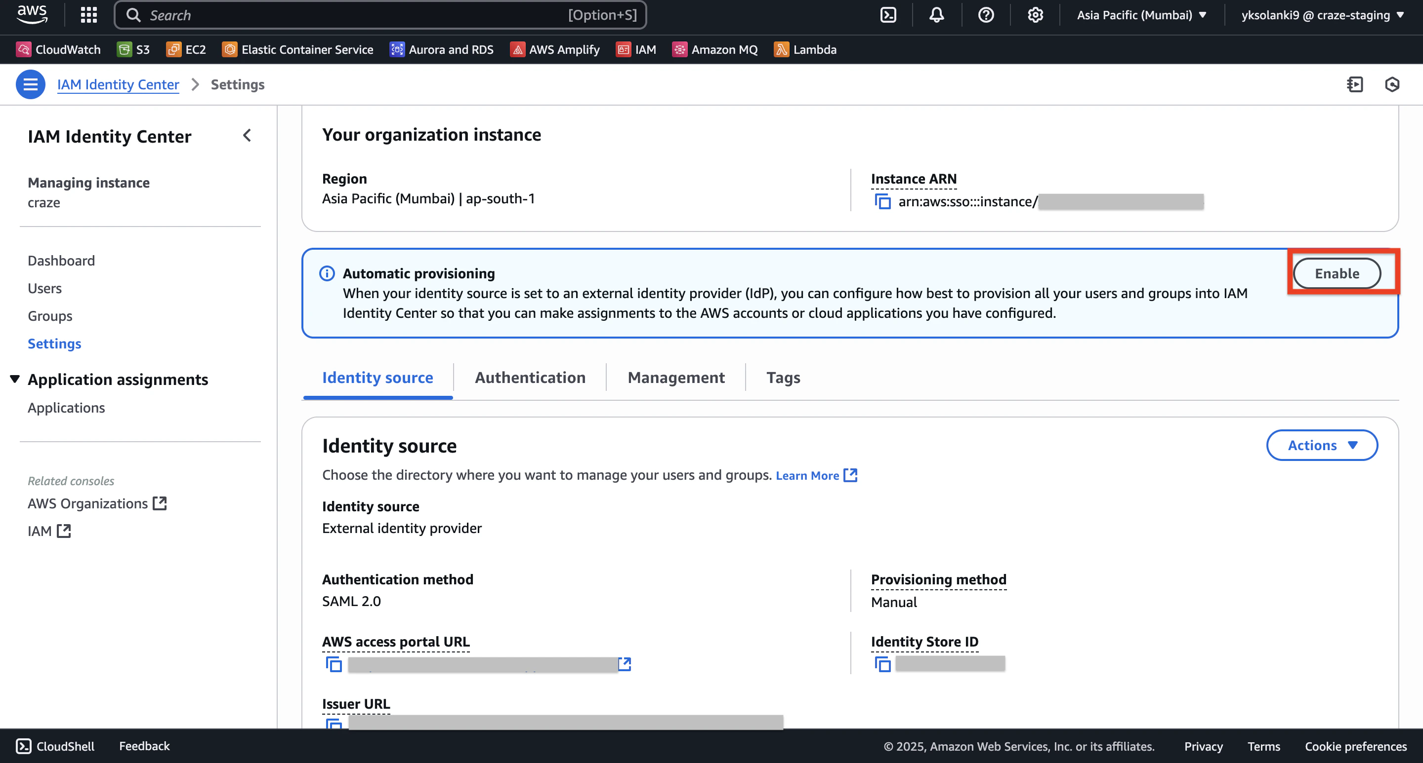 - Go to IAM Identity Center > Settings