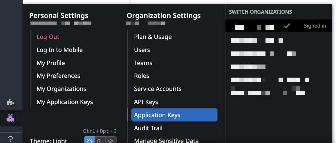 - To add a Datadog API key, Navigate to Organization settings, then click the API keys tab.