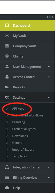 - In the left pane, go to Settings > API Keys.