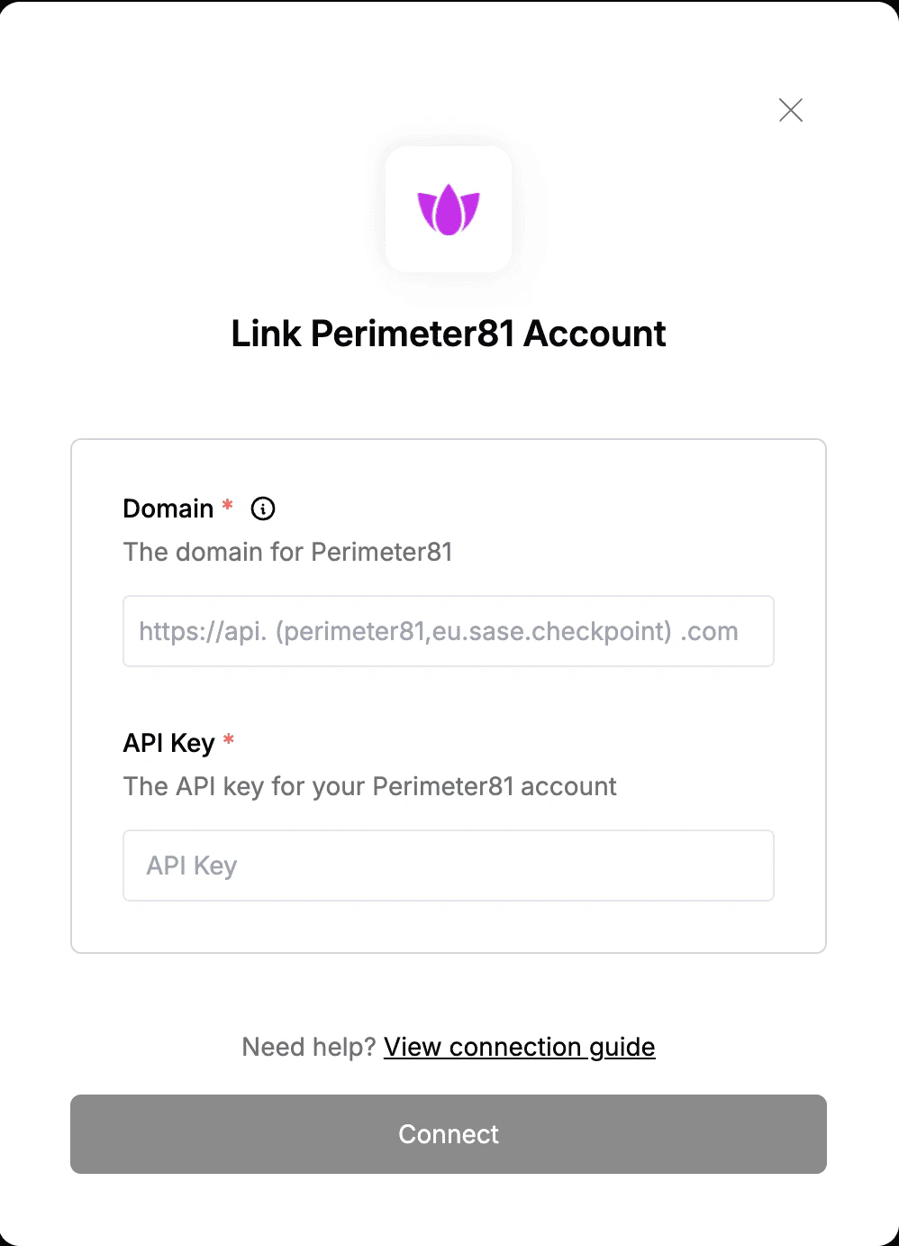 To authenticate with Perimeter81, you need one key piece of information:- API Key - Your Perimeter81 API Key