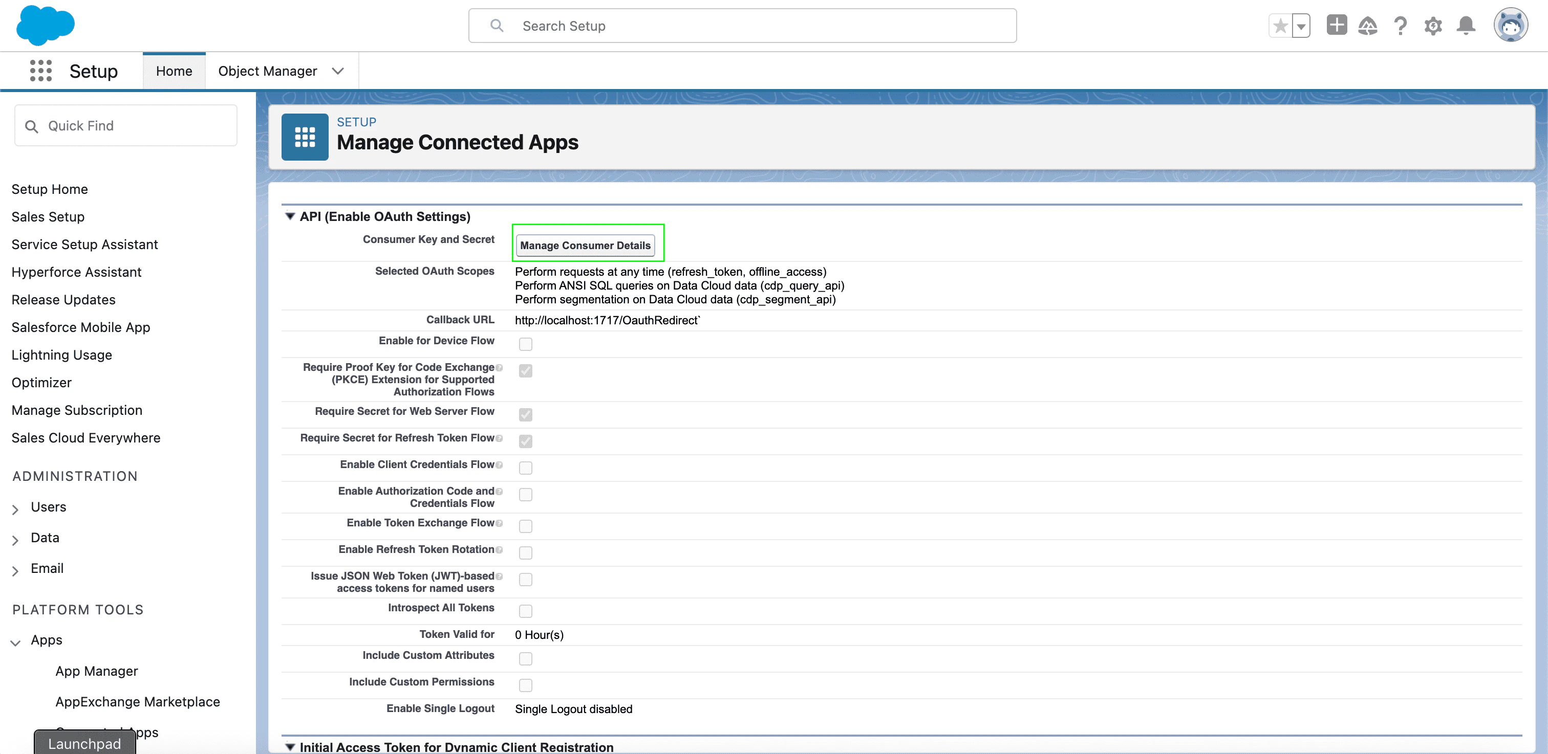 - Select Enable OAuth Settings.