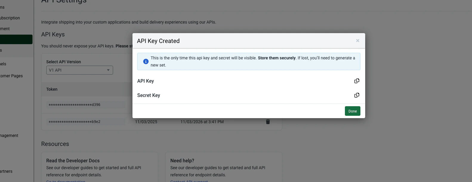 - Secret Key - Used together with your API Key to authenticate and authorize requests to the ShipStation (v1) API.